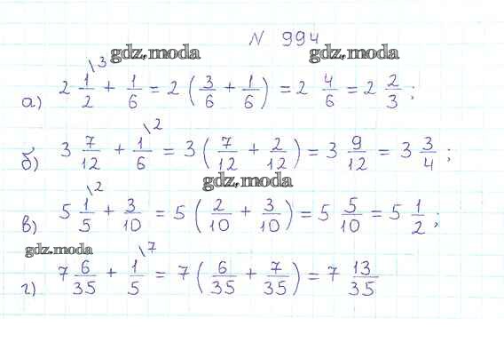 ОТВЕТ на задание № 994 Учебник по Математике 5 класс Никольский МГУ - школе