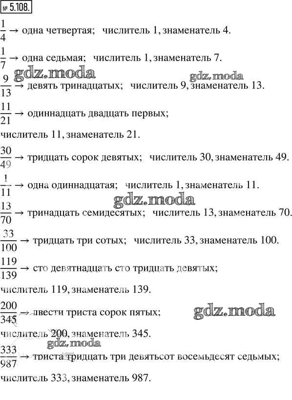 ОТВЕТ на задание № 5.108 Учебник по Математике 5 класс Виленкин