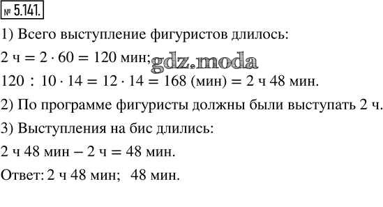 ГДЗ решение к заданию № 5.141 Математика 5 класс Виленкин Н.Я. Просвещение 2021 Часть 2 бесплатно на гдз.мода!