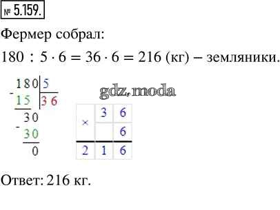 ГДЗ решение к заданию № 5.159 Математика 5 класс Виленкин Н.Я. Просвещение 2021 Часть 2 бесплатно на гдз.мода!