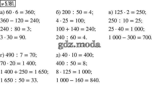 ОТВЕТ на задание № 5.181 Учебник по Математике 5 класс Виленкин