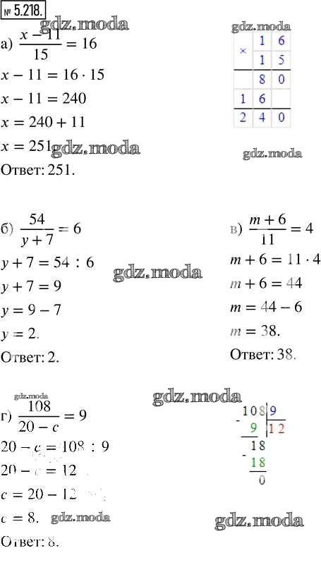 ГДЗ решение к заданию № 5.218 Математика 5 класс Виленкин Н.Я. Просвещение 2021 Часть 2 бесплатно на гдз.мода!