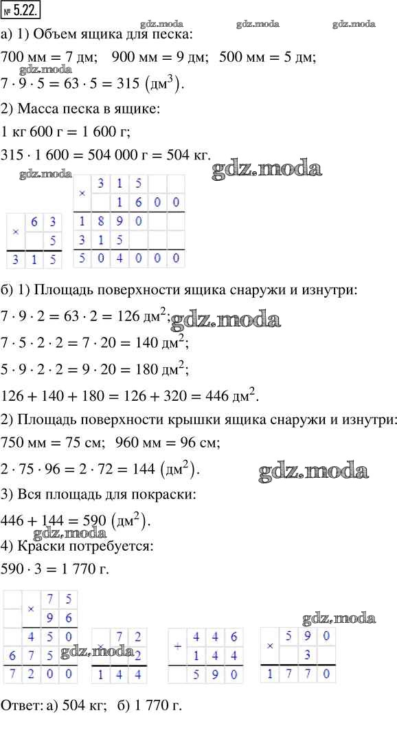 ГДЗ решение к заданию № 5.22 Математика 5 класс Виленкин Н.Я. Просвещение 2021 Часть 2 бесплатно на гдз.мода!
