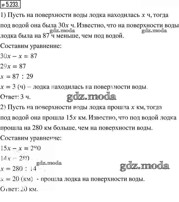 ГДЗ решение к заданию № 5.233 Математика 5 класс Виленкин Н.Я. Просвещение 2021 Часть 2 бесплатно на гдз.мода!