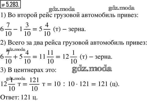 ОТВЕТ на задание № 5.283 Учебник по Математике 5 класс Виленкин