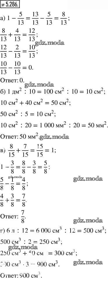 ОТВЕТ на задание № 5.286 Учебник по Математике 5 класс Виленкин