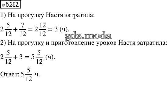ОТВЕТ на задание № 5.302 Учебник по Математике 5 класс Виленкин