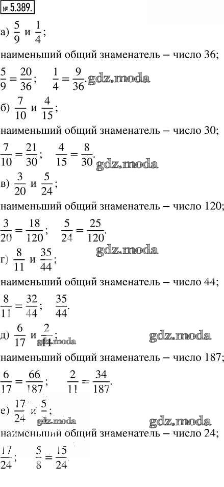 ГДЗ решение к заданию № 5.389 Математика 5 класс Виленкин Н.Я. Просвещение 2021 Часть 2 бесплатно на гдз.мода!