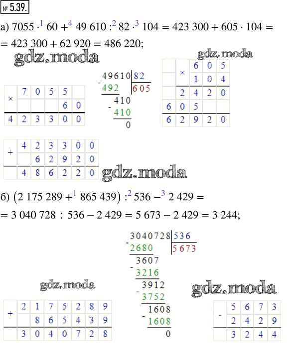 ОТВЕТ на задание № 5.39 Учебник по Математике 5 класс Виленкин
