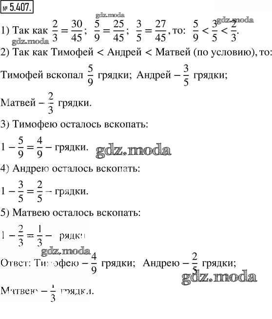 ОТВЕТ на задание № 5.407 Учебник по Математике 5 класс Виленкин