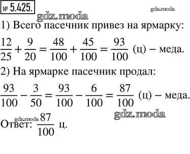 ОТВЕТ на задание № 5.425 Учебник по Математике 5 класс Виленкин