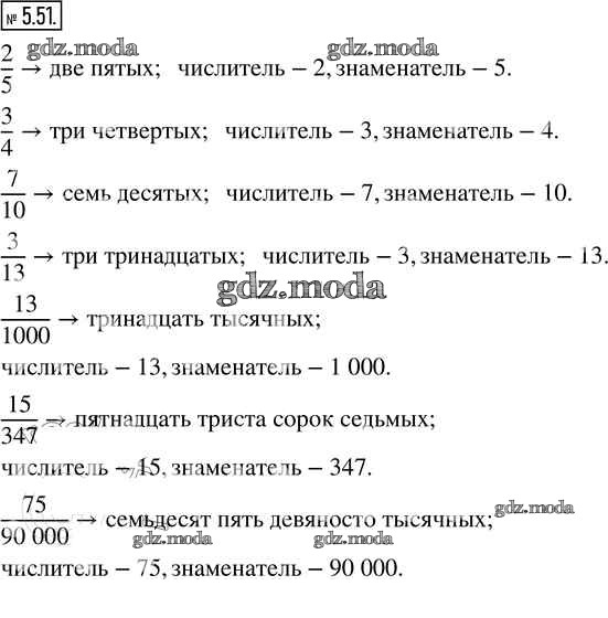 ОТВЕТ на задание № 5.51 Учебник по Математике 5 класс Виленкин