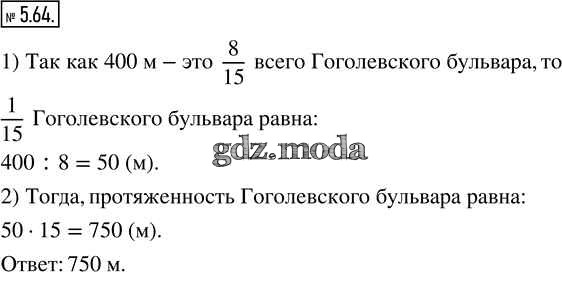 ОТВЕТ на задание № 5.64 Учебник по Математике 5 класс Виленкин