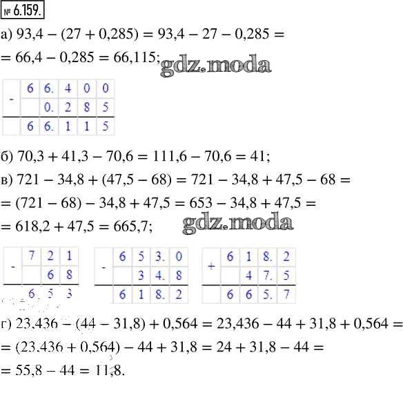 ОТВЕТ на задание № 6.159 Учебник по Математике 5 класс Виленкин