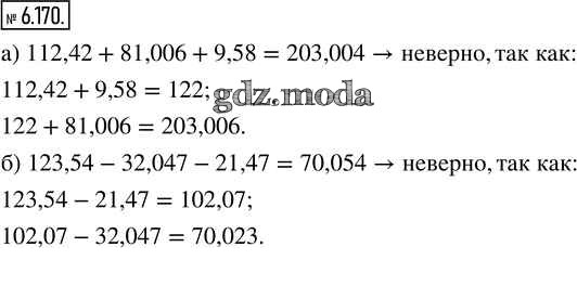 ОТВЕТ на задание № 6.170 Учебник по Математике 5 класс Виленкин