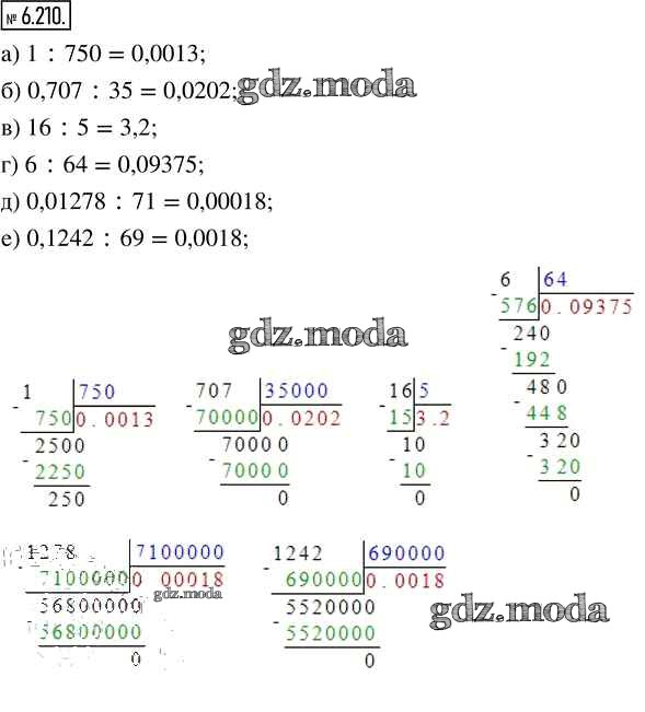 ГДЗ решение к заданию № 6.210 Математика 5 класс Виленкин Н.Я. Просвещение 2021 Часть 2 бесплатно на гдз.мода!