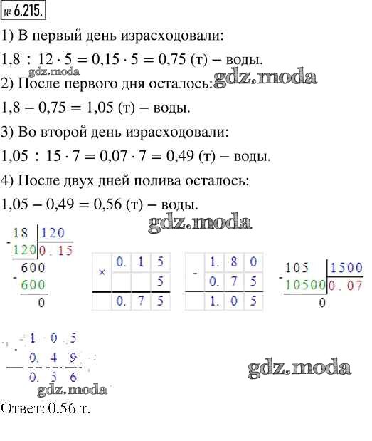 ОТВЕТ на задание № 6.215 Учебник по Математике 5 класс Виленкин