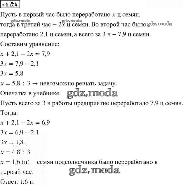 ОТВЕТ на задание № 6.254 Учебник по Математике 5 класс Виленкин