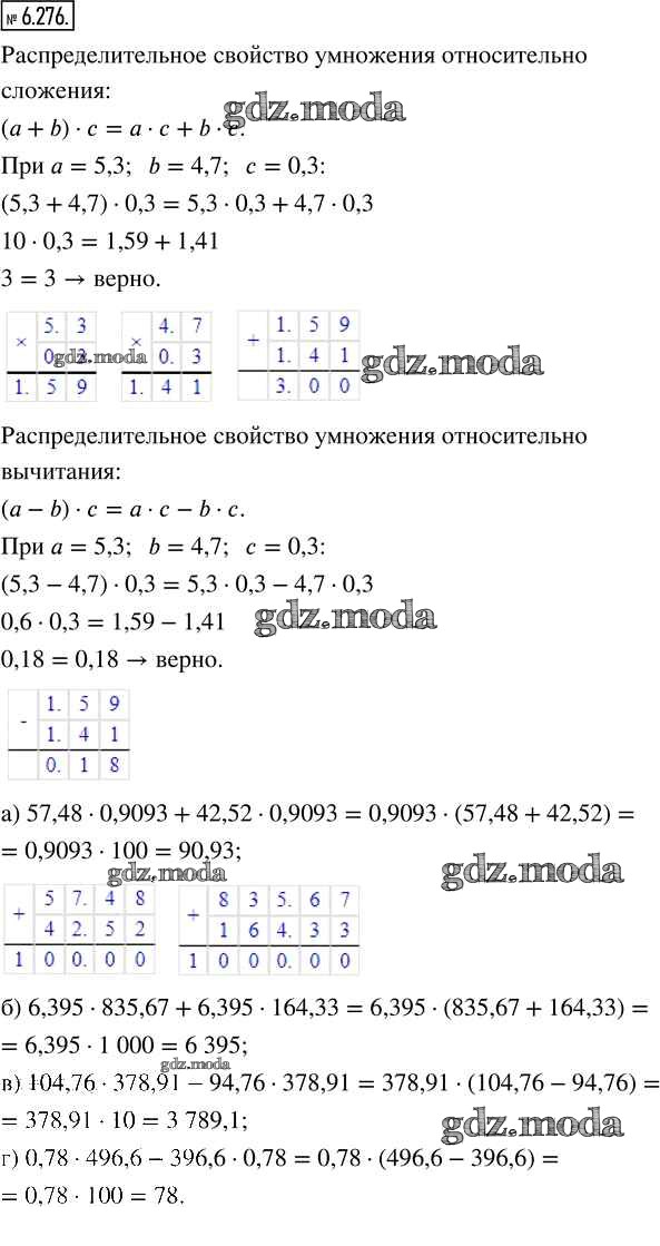 ГДЗ решение к заданию № 6.276 Математика 5 класс Виленкин Н.Я. Просвещение 2021 Часть 2 бесплатно на гдз.мода!