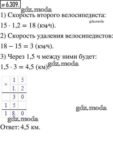ГДЗ решение к заданию № 6.309 Математика 5 класс Виленкин Н.Я. Просвещение 2021 Часть 2 бесплатно на гдз.мода!