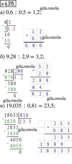 ГДЗ решение к заданию № 6.315 Математика 5 класс Виленкин Н.Я. Просвещение 2021 Часть 2 бесплатно на гдз.мода!