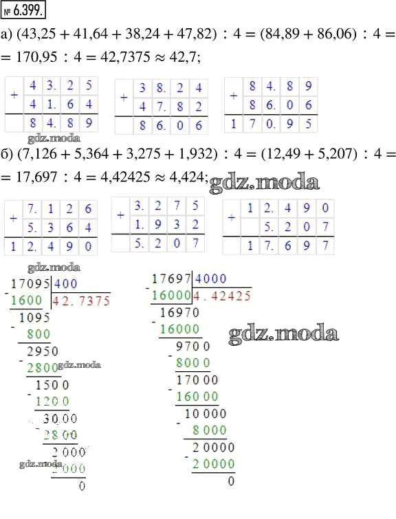 ГДЗ решение к заданию № 6.399 Математика 5 класс Виленкин Н.Я. Просвещение 2021 Часть 2 бесплатно на гдз.мода!