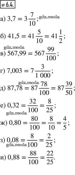 ГДЗ решение к заданию № 6.4 Математика 5 класс Виленкин Н.Я. Просвещение 2021 Часть 2 бесплатно на гдз.мода!