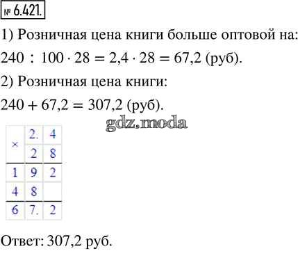 ГДЗ решение к заданию № 6.421 Математика 5 класс Виленкин Н.Я. Просвещение 2021 Часть 2 бесплатно на гдз.мода!