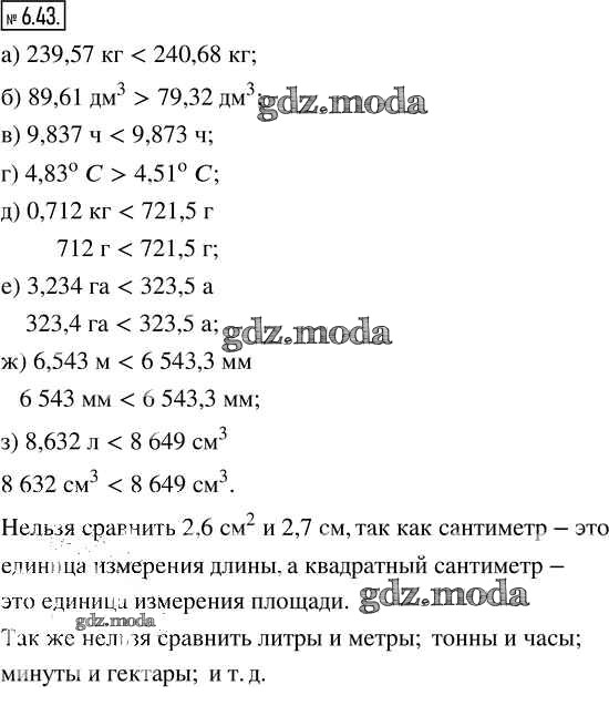 ОТВЕТ на задание № 6.43 Учебник по Математике 5 класс Виленкин