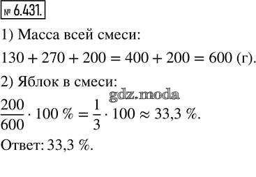 ГДЗ решение к заданию № 6.431 Математика 5 класс Виленкин Н.Я. Просвещение 2021 Часть 2 бесплатно на гдз.мода!