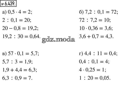 ОТВЕТ на задание № 6.439 Учебник по Математике 5 класс Виленкин
