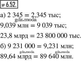 ГДЗ решение к заданию № 6.52 Математика 5 класс Виленкин Н.Я. Просвещение 2021 Часть 2 бесплатно на гдз.мода!