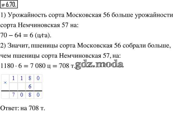 ОТВЕТ на задание № 6.70 Учебник по Математике 5 класс Виленкин