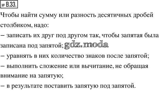 ОТВЕТ на задание № В.33 Учебник по Математике 5 класс Виленкин