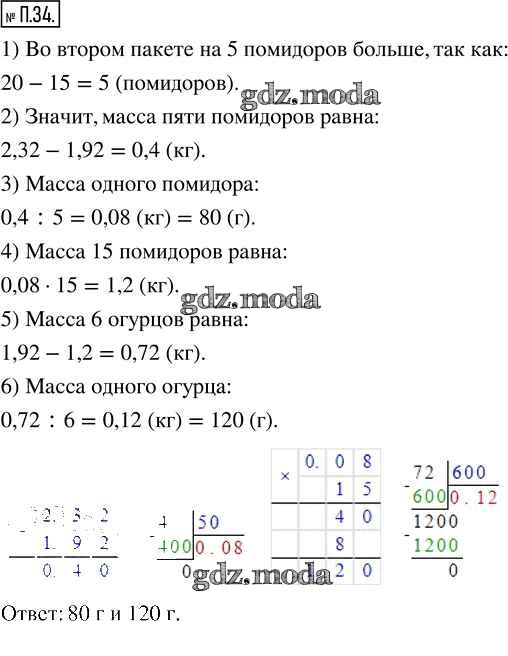ГДЗ решение к заданию № П.34 Математика 5 класс Виленкин Н.Я. Просвещение 2021 Часть 2 бесплатно на гдз.мода!