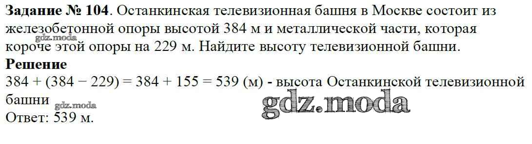 ОТВЕТ на задание № 104 Учебник по Математике 5 класс Виленкин