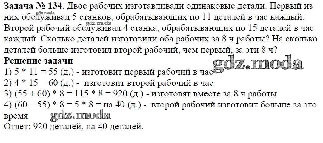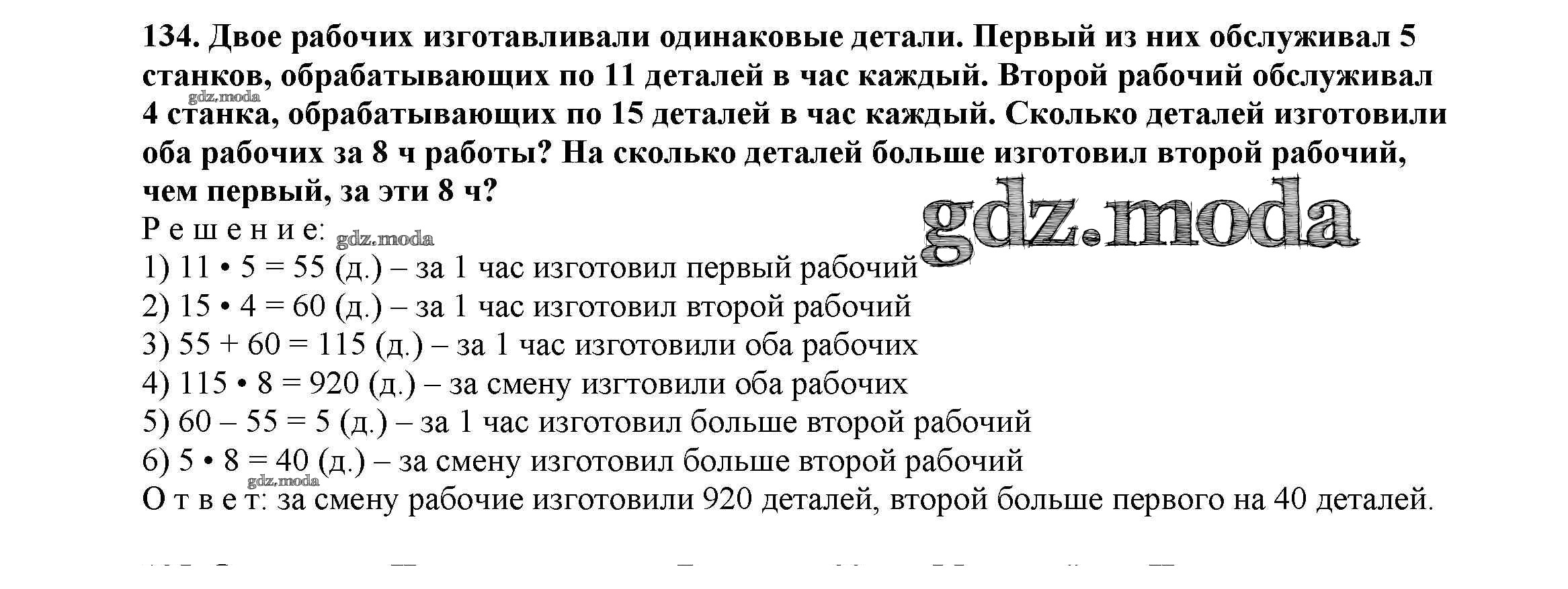 ОТВЕТ на задание № 134 Учебник по Математике 5 класс Виленкин