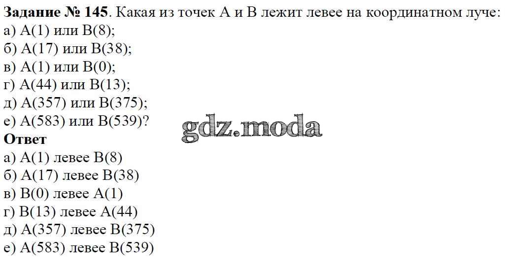 ОТВЕТ на задание № 145 Учебник по Математике 5 класс Виленкин