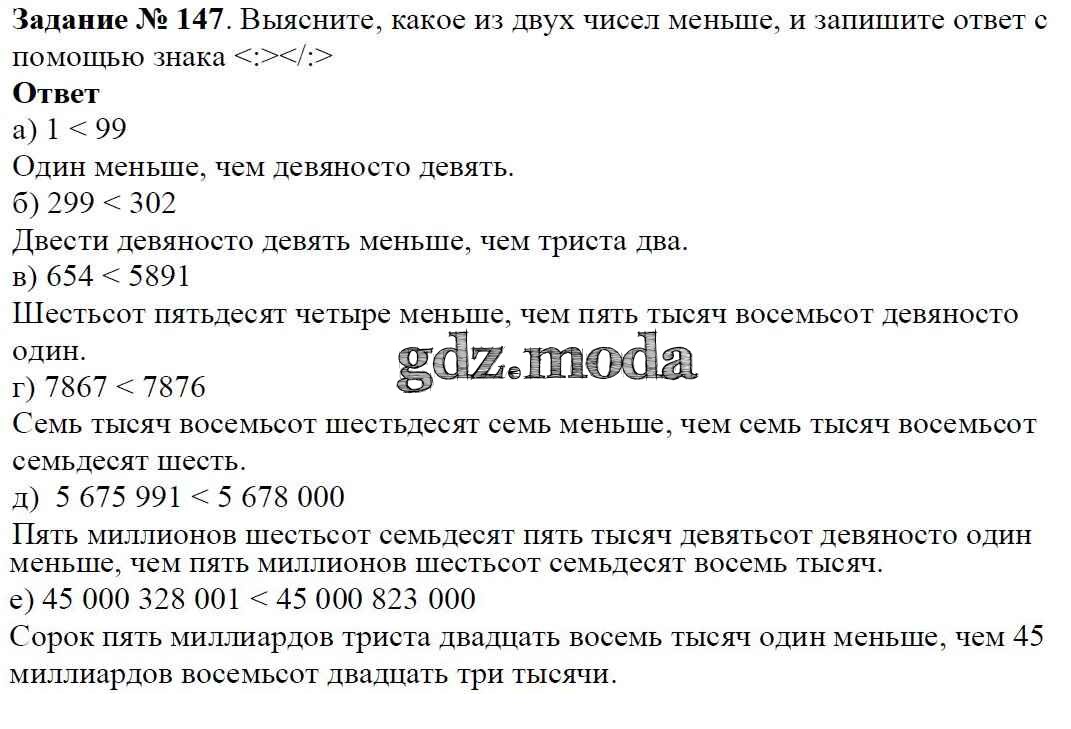 ОТВЕТ на задание № 147 Учебник по Математике 5 класс Виленкин