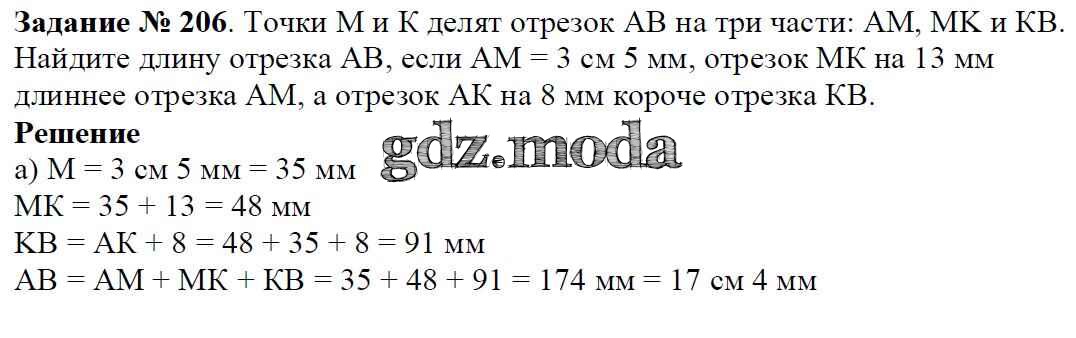 ОТВЕТ на задание № 206 Учебник по Математике 5 класс Виленкин