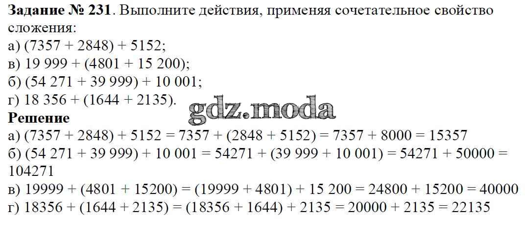 ОТВЕТ на задание № 231 Учебник по Математике 5 класс Виленкин