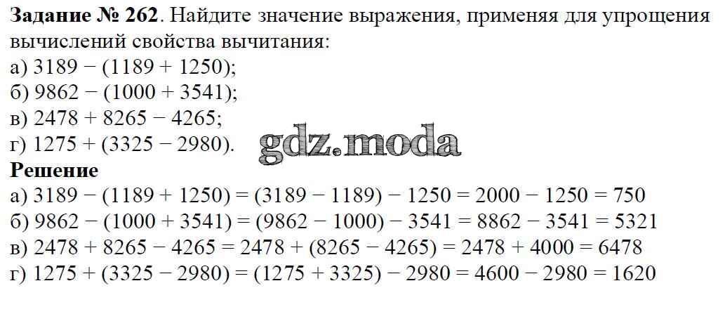ОТВЕТ на задание № 262 Учебник по Математике 5 класс Виленкин