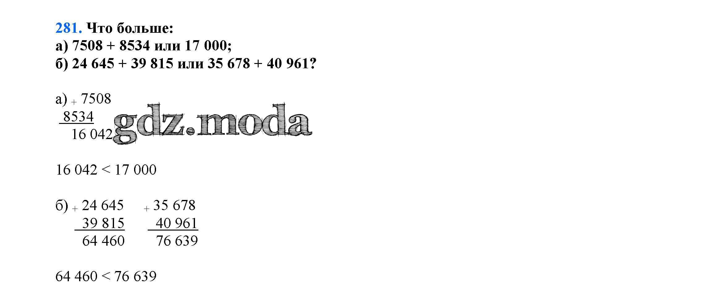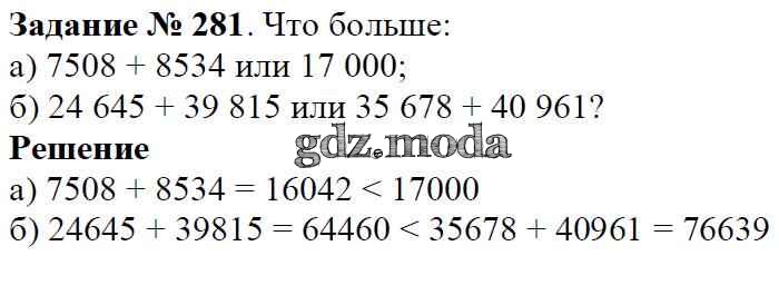 ОТВЕТ на задание № 281 Учебник по Математике 5 класс Виленкин