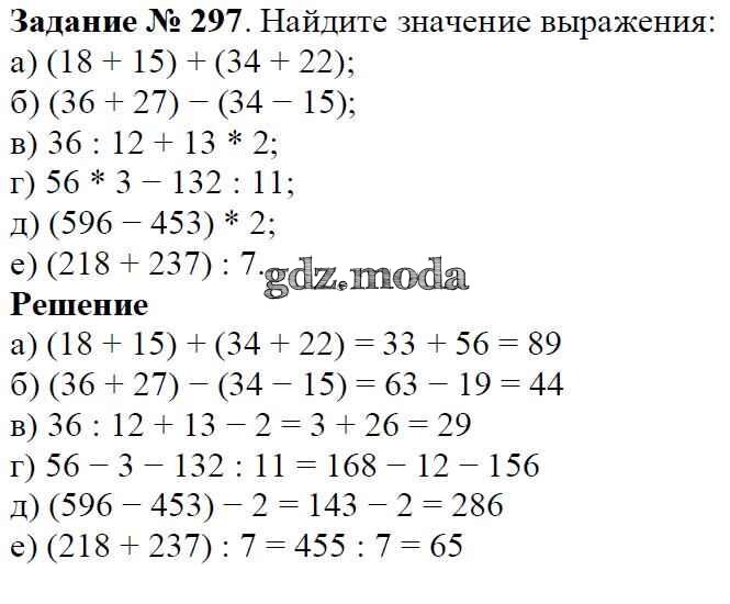 ОТВЕТ на задание № 297 Учебник по Математике 5 класс Виленкин