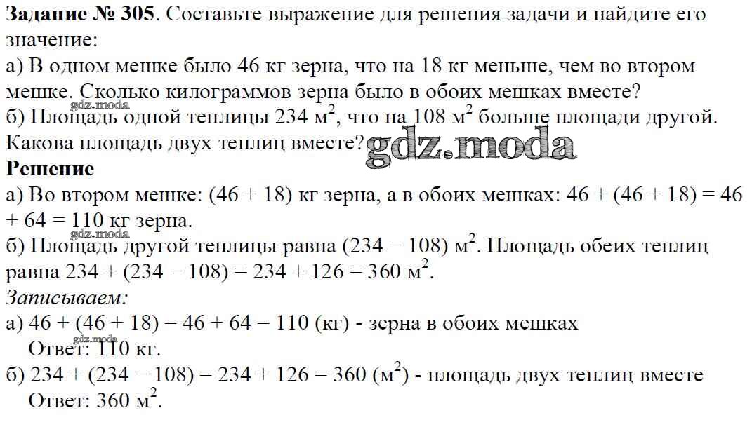 ОТВЕТ на задание № 305 Учебник по Математике 5 класс Виленкин