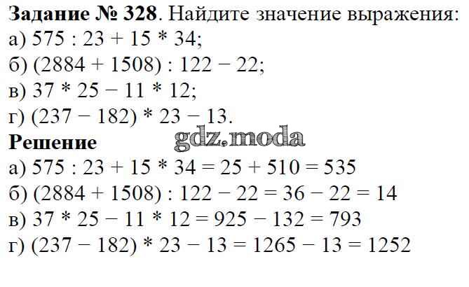 ОТВЕТ на задание № 328 Учебник по Математике 5 класс Виленкин