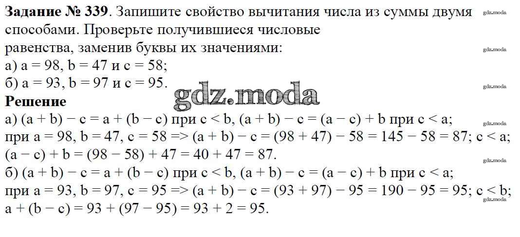 ОТВЕТ на задание № 339 Учебник по Математике 5 класс Виленкин