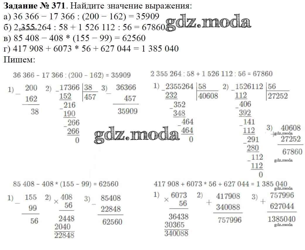 ОТВЕТ на задание № 371 Учебник по Математике 5 класс Виленкин