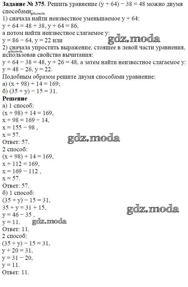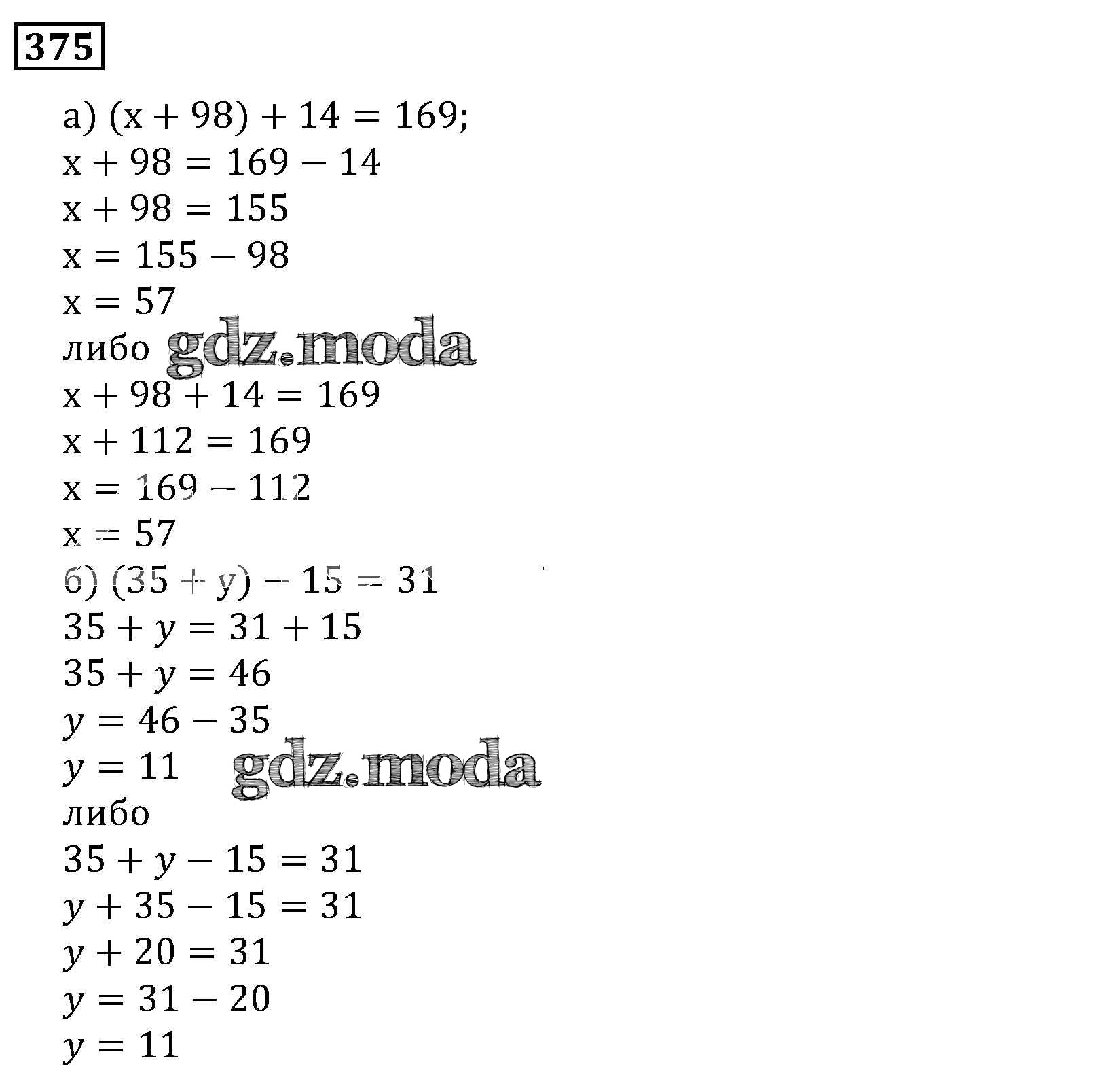 ОТВЕТ на задание № 375 Учебник по Математике 5 класс Виленкин