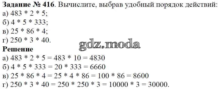 ОТВЕТ на задание № 416 Учебник по Математике 5 класс Виленкин